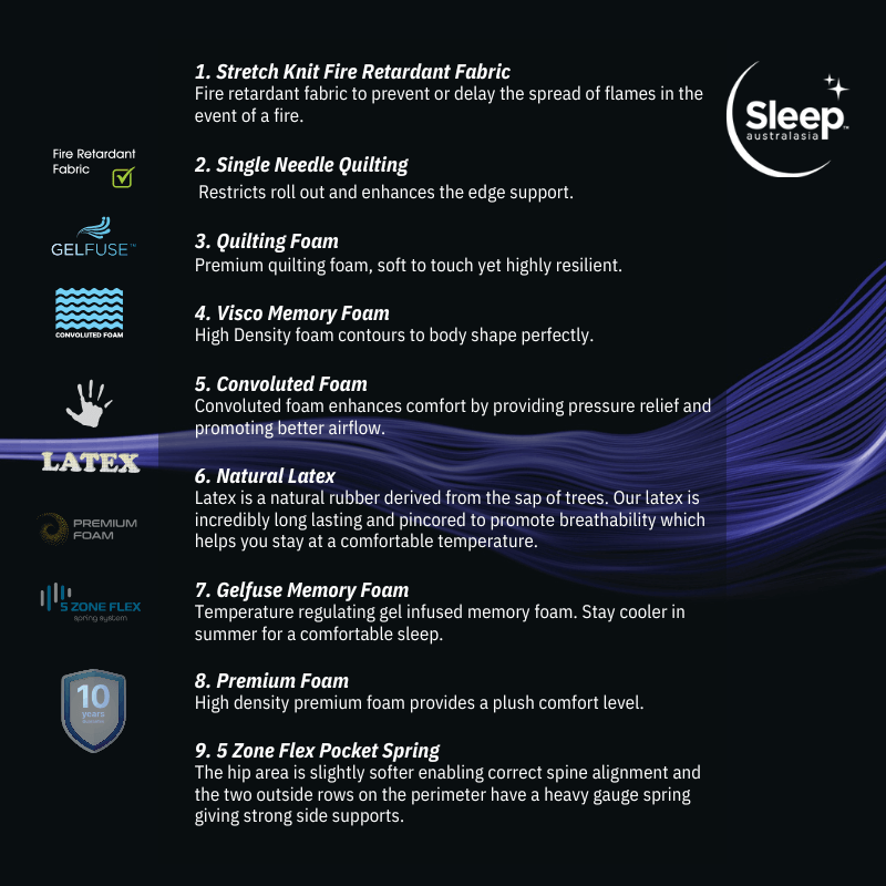 Latex is a natural rubber derived from the sap of trees. Our latex is incredibly long lasting and pin cored to promote breathability which helps you stay at a comfortable temperature.