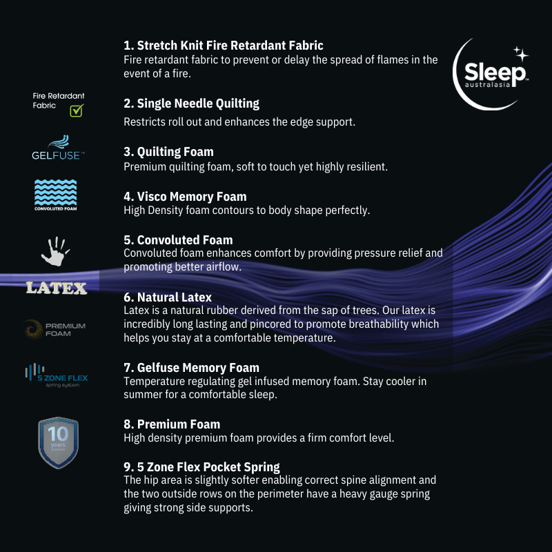 Latex is a natural rubber derived from the sap of trees. Our latex is incredibly long lasting and pin cored to promote breathability which helps you stay at a comfortable temperature.